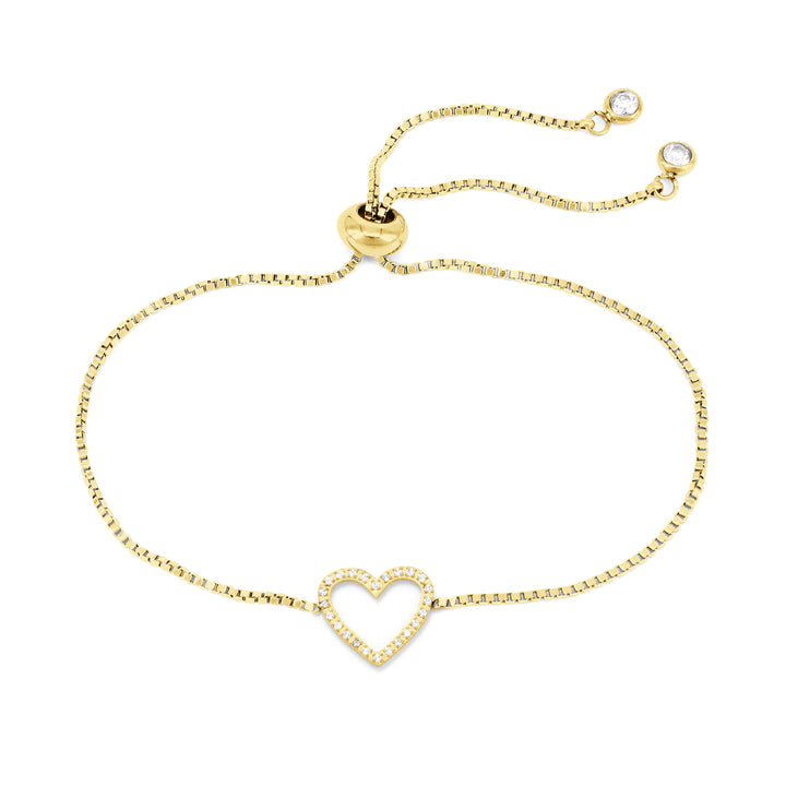 Armband mit zentralem Herz-Detail und eingefassten Zirkonen an einer zarten 18 cm Kette mit verstellbarem Verschluss aus chirurgischem Stahl. Vergoldet (18k)